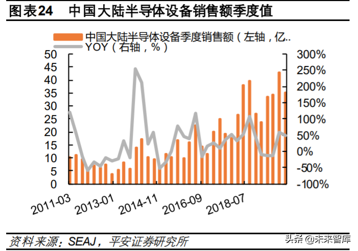 (2)目前大陆集成电路设备自主化率仅为 7%,国产替代空间巨大。大陆将开启芯片投资大潮,新 建、产能爬坡、规划的芯片产线众多,有望为国产半导体设备商带来重要机会。